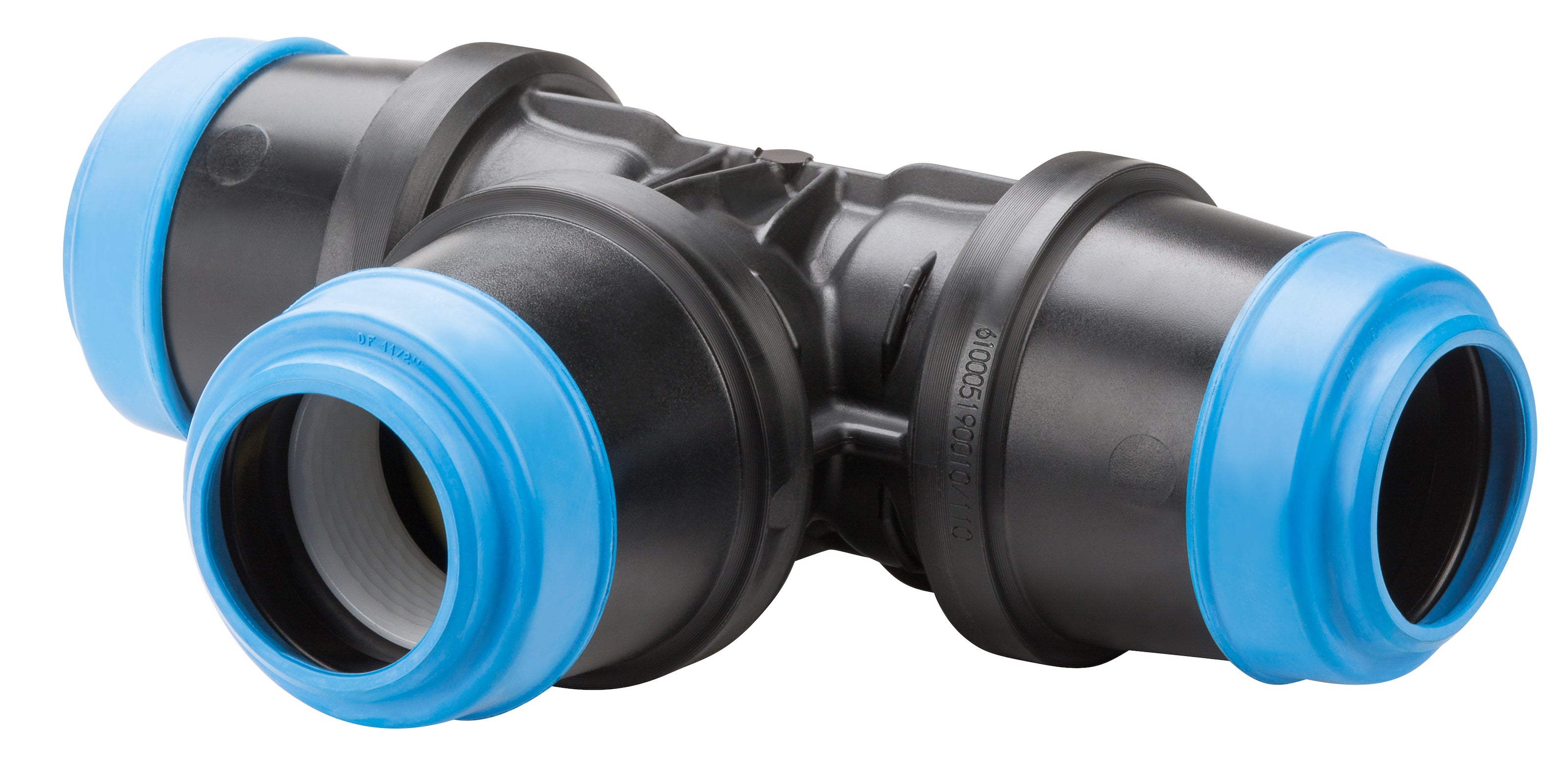 ISO T-kobling i POM til PE-rør, pålidelig og nem at installere. Højkvalitets elastomertætning og UV-stabiliseret for lang holdbarhed. Fleksibel installation med godt greb og tætning.