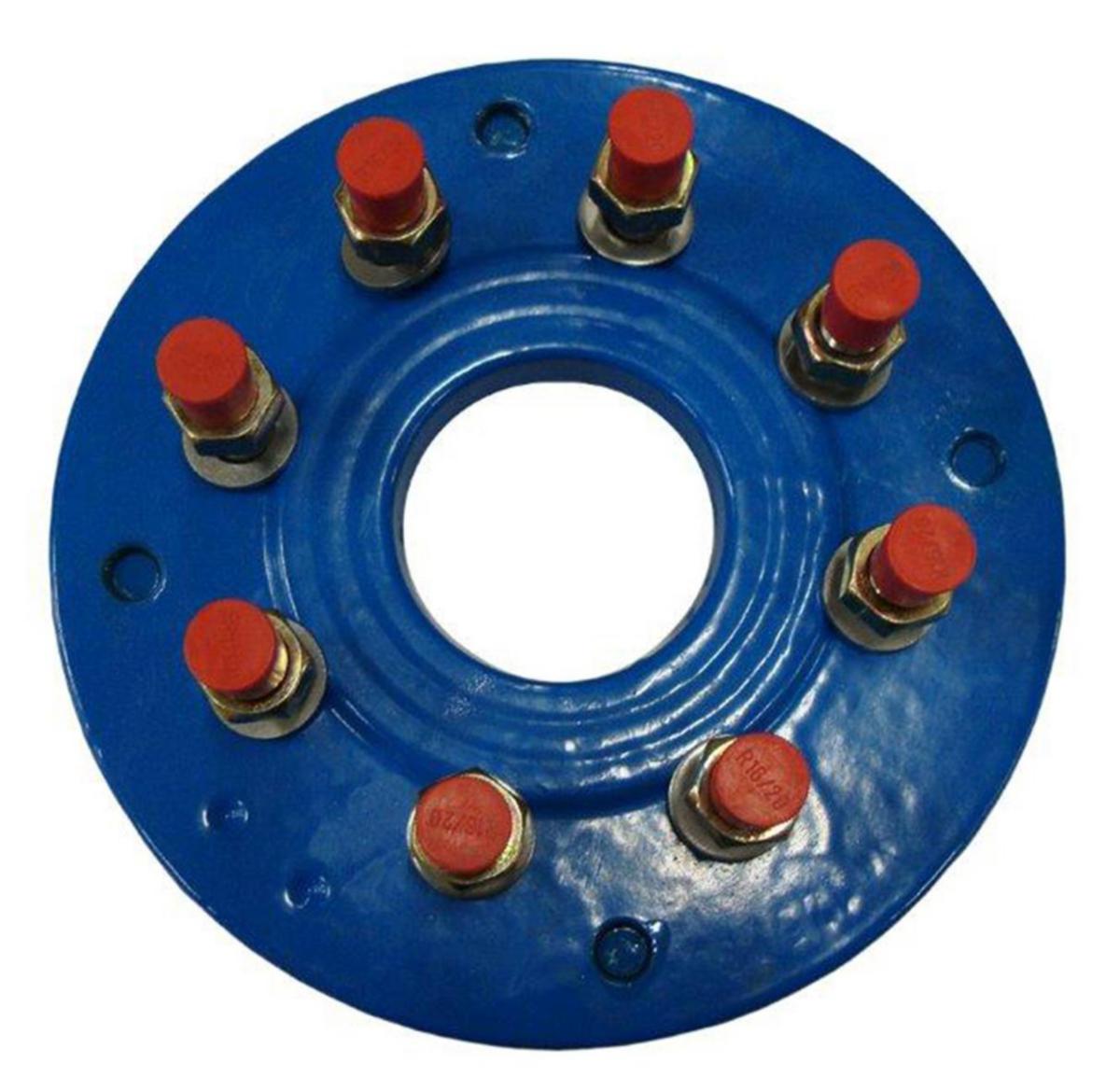 Övergångsfläns från gammalt fotknärör DN125 med fyra hål till DN80 brandpost.