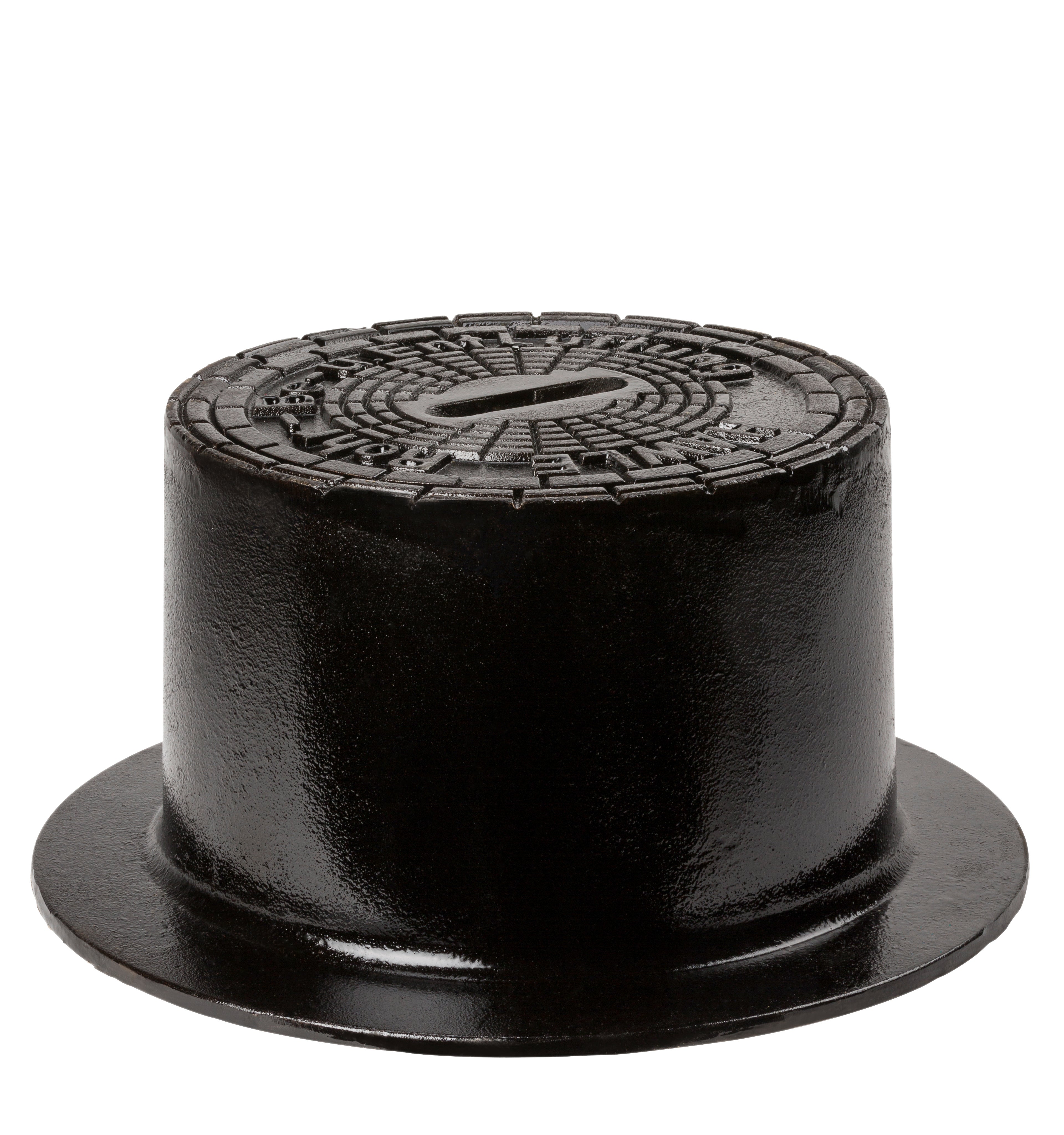 Robust betäckning för avlutare 9822/9922, tillverkad i gråjärn och skyddad med bitumenbeläggning. Vikt: 41,5 kg.
