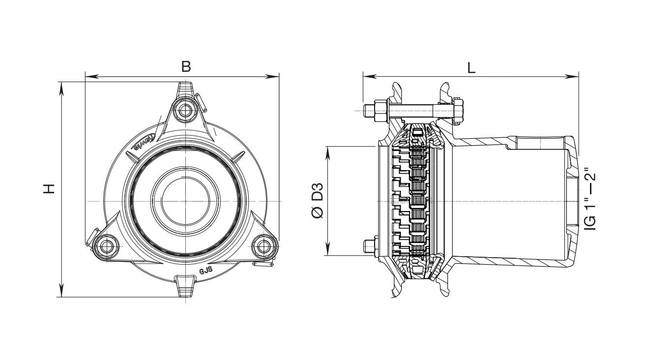 | DN | PN | Artikelnummer | B (mm) | H (mm) | L (mm) | Muff 1 øD3 max/min | Vikt (kg) |