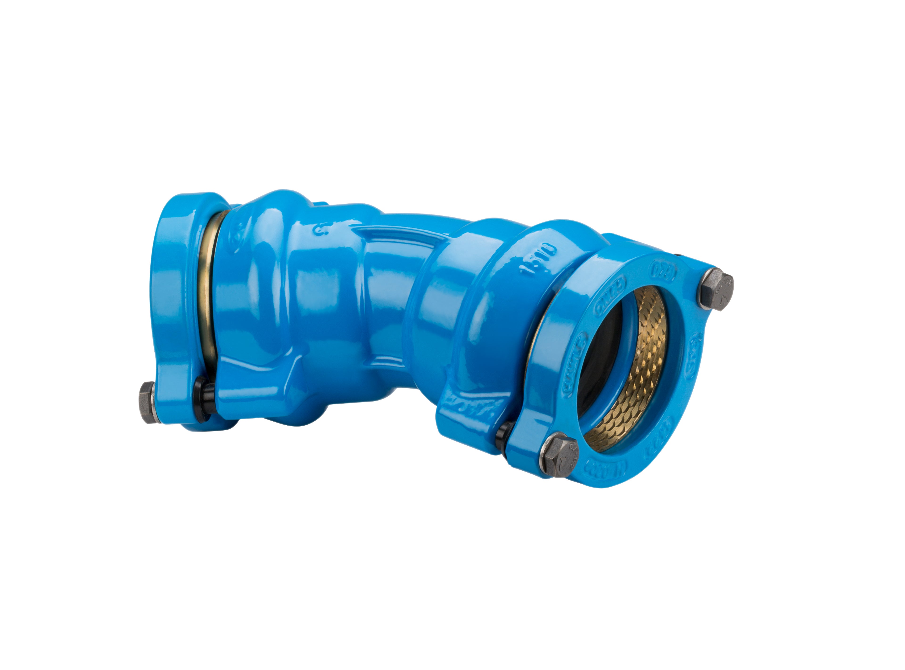 30° böj för röranslutning i System 2000, med dragfast och flexibel tätning. Epoxibelagd och enkel att installera. Finns tillgänglig YD 75-225 på förfrågan.