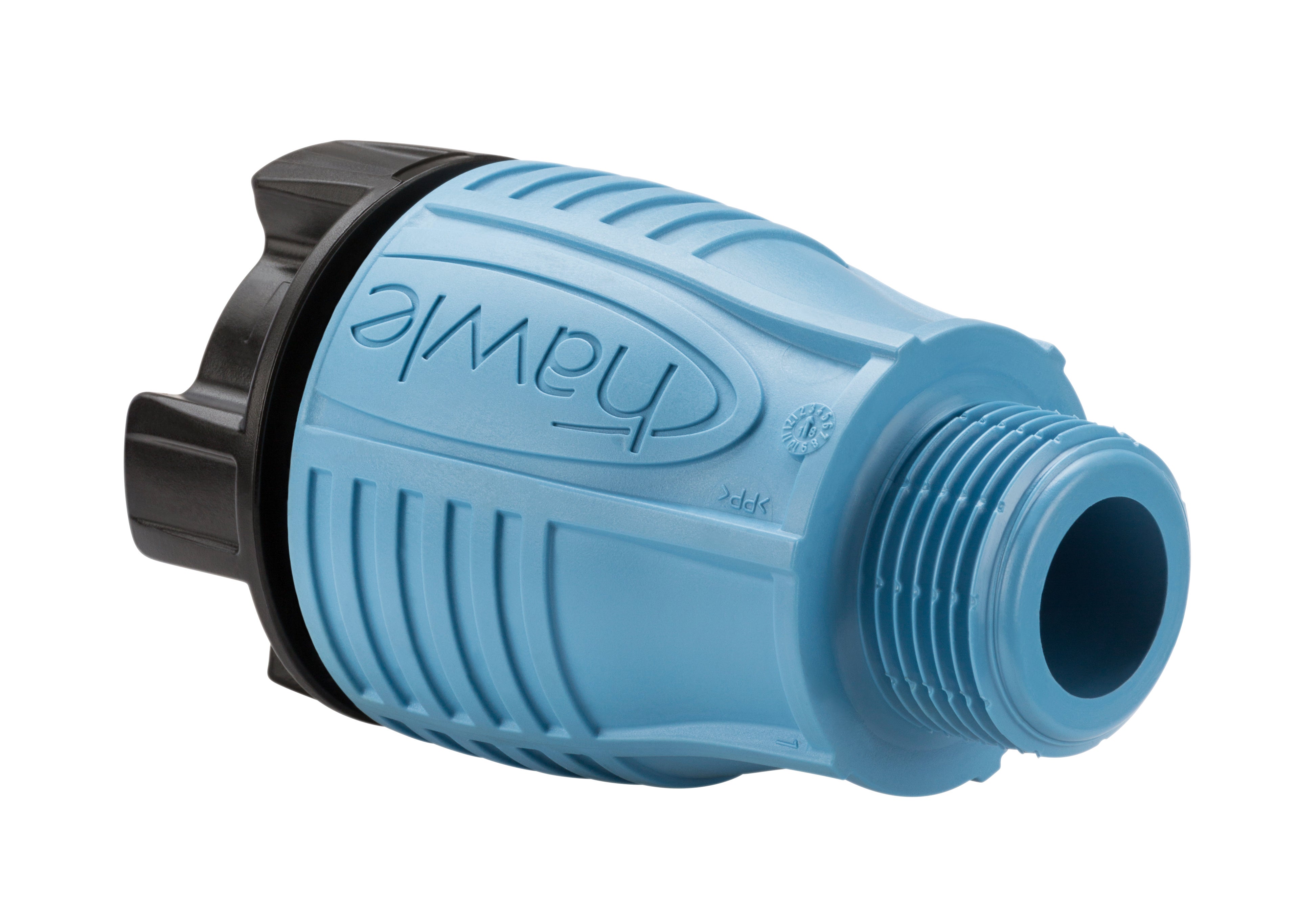HAWLE-FIT 6120HF är en instickskoppling med utvändig gänga för anslutning av PE-rör till komponenter med utvändig gänga i dricksvattensystem. Kopplingen är avsedd för servisledningar och är konstruerad för PE-rör med ytterdiameter 25–63 mm och arbetstryck upp till PN 16 vid medietemperaturer upp till 30 °C. Installationen är enkel och sker utan behov av specialverktyg, och kopplingen kan även demonteras vid behov. Den genomtänkta klämkonstruktionen ger säker fasthållning av röret samtidigt som belastningen på röret reduceras, vilket bidrar till lång livslängd. Kopplingen levereras monteringsklar och tillverkas av högkvalitativa polymermaterial, där huset är UV-beständig polypropen och gripring samt klämenhet är tillverkade i POM. Tätningen utgörs av elastomer. HAWLE-FIT 6120HF uppfyller kraven enligt EN 12201 och DIN 8074 för PE-rör, är dragfast enligt ISO 14236 och har utvändig gänga enligt EN 10226-1. Produkten är ett driftsäkert och kostnadseffektivt alternativ för både nyinstallationer och utbyten i moderna vattenförsörjningssystem.