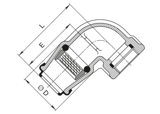 Hawle 6410 är en 90° vinkelkoppling inom ISO-serien, försedd med invändig gänga enligt ISO 228 för anslutning till komponenter med utvändig gänga. Den är särskilt lämpad för användning i servisledningar där rördragningen kräver en fast 90-graders riktningsändring och där en kompakt och säker gänganslutning är nödvändig, exempelvis vid anslutning till ventiler, mätare eller andra rördelar. Konstruktionen gör den lämplig i trånga utrymmen.