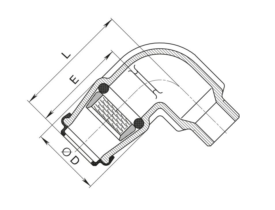 ISO-reducerande vinkelkoppling med utvändig gänga. Kompakt, dragfast och korrosionsskyddad.