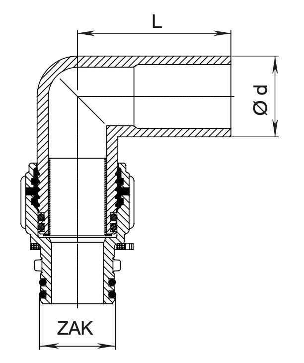 90° vinkelkoppling med ZAK anslutning för PE-rör.