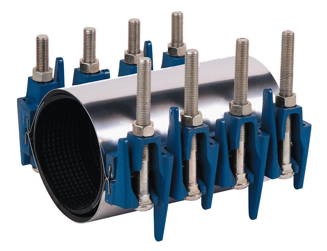 Flexibel reparations- och övergångsmuff i rostfritt stål med brett toleransområde. Lämplig för tätning av rörbrott, korrosionsskador samt övergångar mellan olika rörtyper. Finns i enkel- och dubbelbandsutförande samt med flänsuttag.
