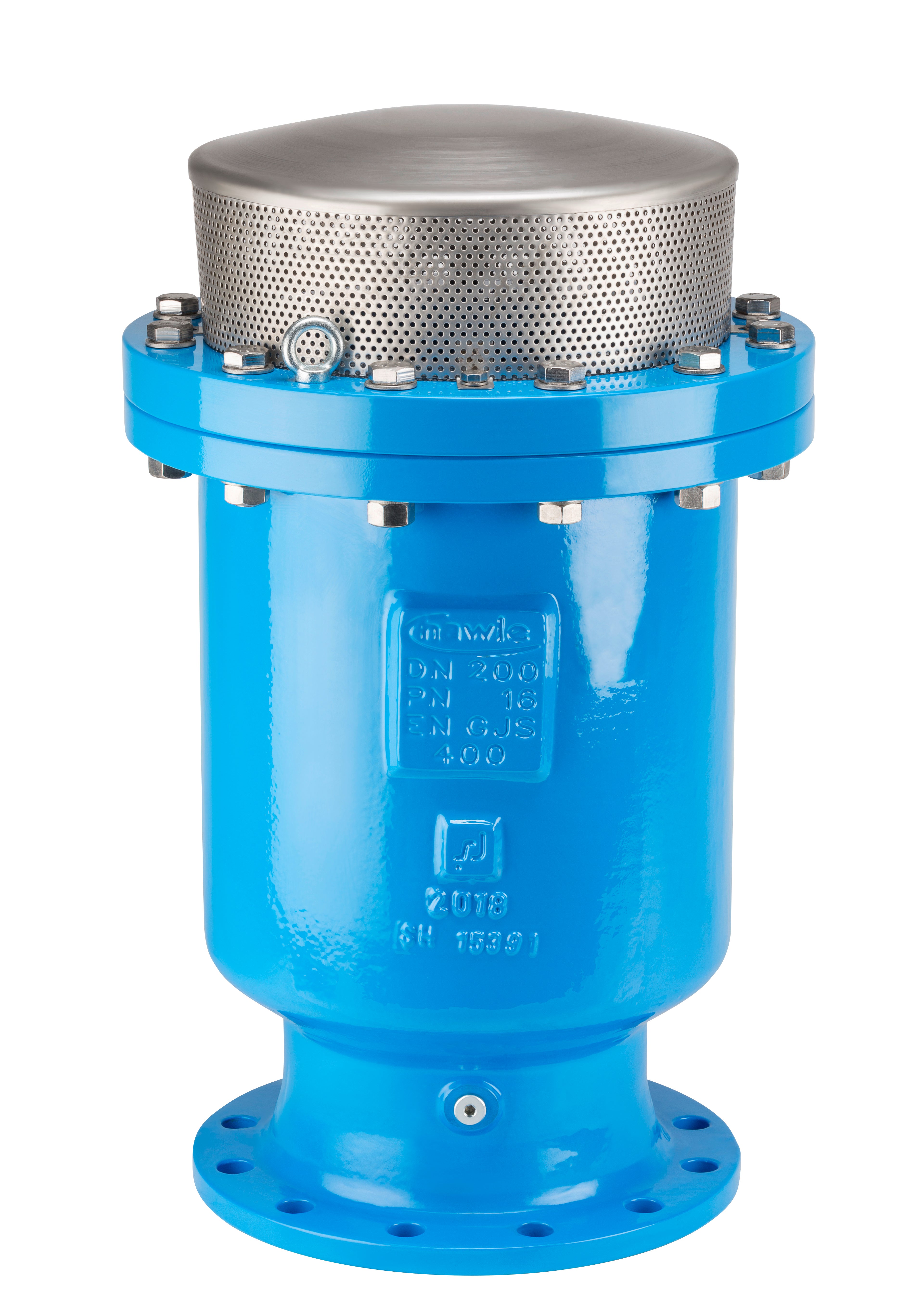 Hawle 9842K är en avancerad dynamisk avluftningsventil med tvåstegsventilation, utvecklad för trycksatta vattenledningar där både effektiv avluftning och tillförlitlig luftintag krävs. Den unika konstruktionen gör att ventilen reagerar omedelbart vid fyllning och tömning av ledningar, samtidigt som den kontinuerligt ventilerar ut gaser som samlas under drift. Den tvåstegade luftutsläppsfunktionen – kombinationen av stor luftvolym vid låga tryck och exakt doserad avluftning vid drifttryck – minimerar risken för tryckslag och vakuumbildning. Ventilens hus är tillverkat i segjärn med pulverepoxibeläggning enligt GSK-standard, vilket ger långvarigt korrosionsskydd även i aggressiva miljöer. Alla invändiga delar är i korrosionsfria material och flottörsystemet är tillverkat i PE100. Dess kompakta form gör installation möjlig även i begränsade utrymmen, exempelvis små schakt eller under mark. Ventilen är försedd med integrerat insektskydd och är förberedd för provtagning eller avluftning via ½" anslutning. Den kan installeras i både vertikala och horisontella ledningar beroende på applikation och finns i flertalet dimensioner och tryckklasser. Hawle 9842K är idealisk för dricksvattensystem, processledningar och andra kritiska applikationer där luftkontroll är avgörande för systemets effektivitet och livslängd.