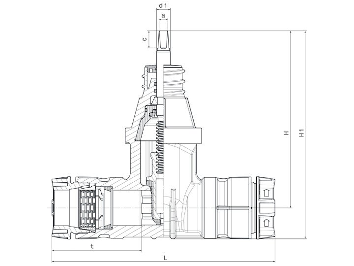 | DN/YD | PN | Artikelnummer | Spindel a (mm) | Spindel c (mm) | Spindel d1 (mm) | t (mm) | Ventil H (mm) | Ventil H1 (mm) | Ventil L (mm) | Vikt (kg) |