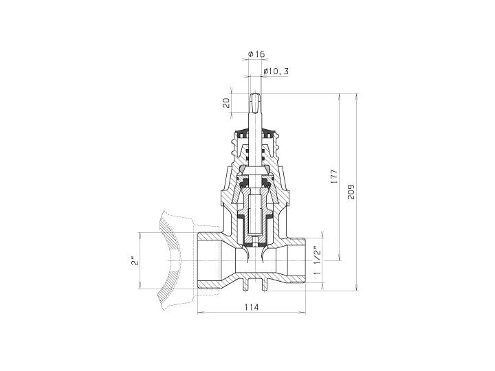 | Spindel | Rostfri duplexspindel 1.4162 med PRE-värde cirka 26. Gropkorrosionspotential minst 750 mV. Rullad gänga. Spindeln polerad i området för O-ringen för tätning. |