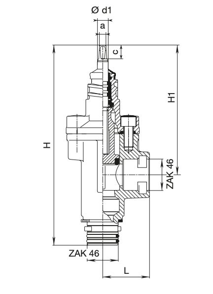 | Anslutning | PN | Artikelnummer | Spindel a (mm) | Spindel c (mm) | Spindel d1 (mm) | Ventil H (mm) | Ventil H1 (mm) | Ventil L (mm) | Vikt (kg) |