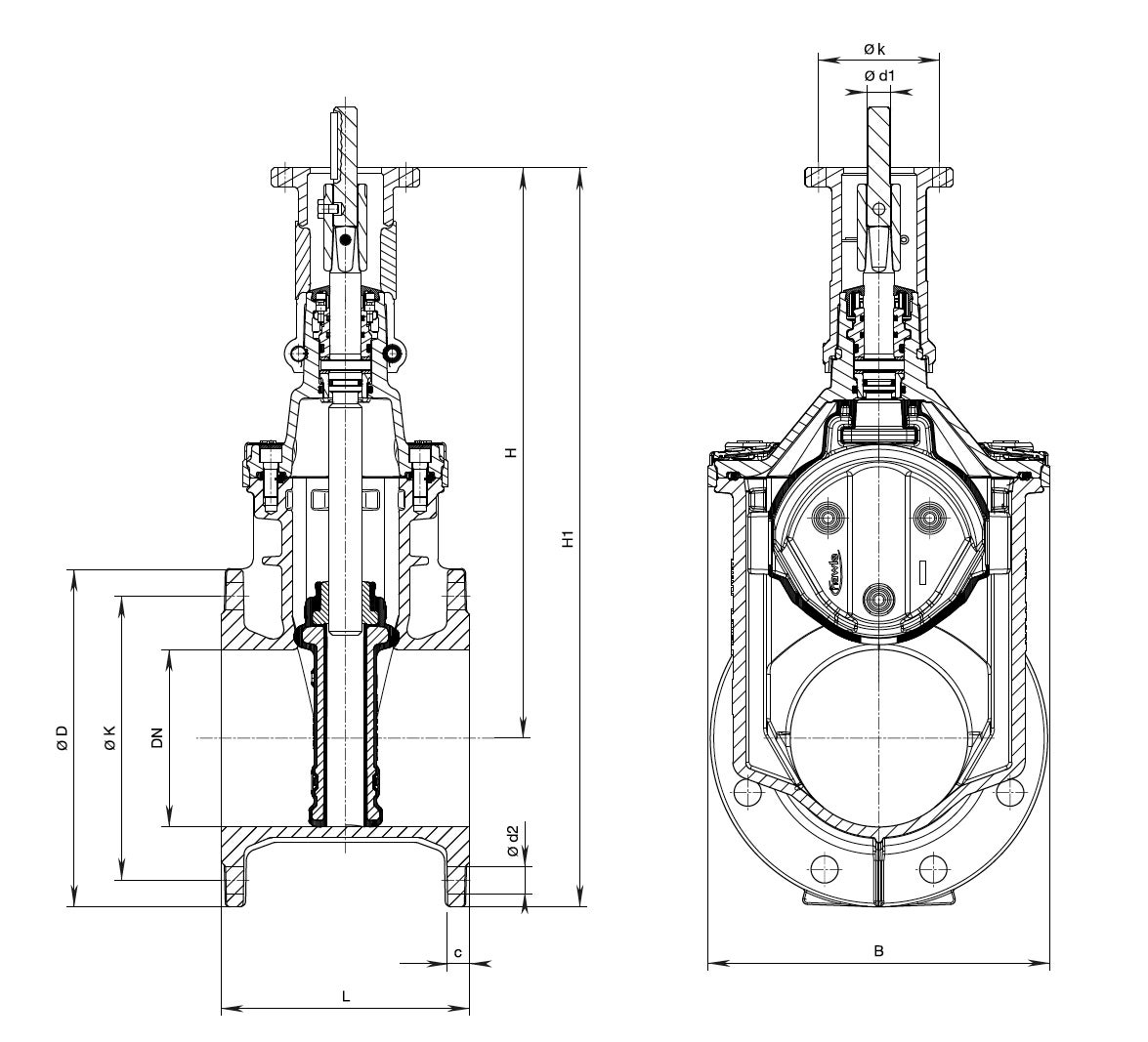 Ventilen är lämplig för drift med automatisk styrning och kan enkelt uppgraderas med lägesindikator. Utföranden finns tillgängliga för DN 50 till DN 600. Monteringsflänsar enligt EN 1092-2, kort bygglängd enligt EN 558-1 GR 14.