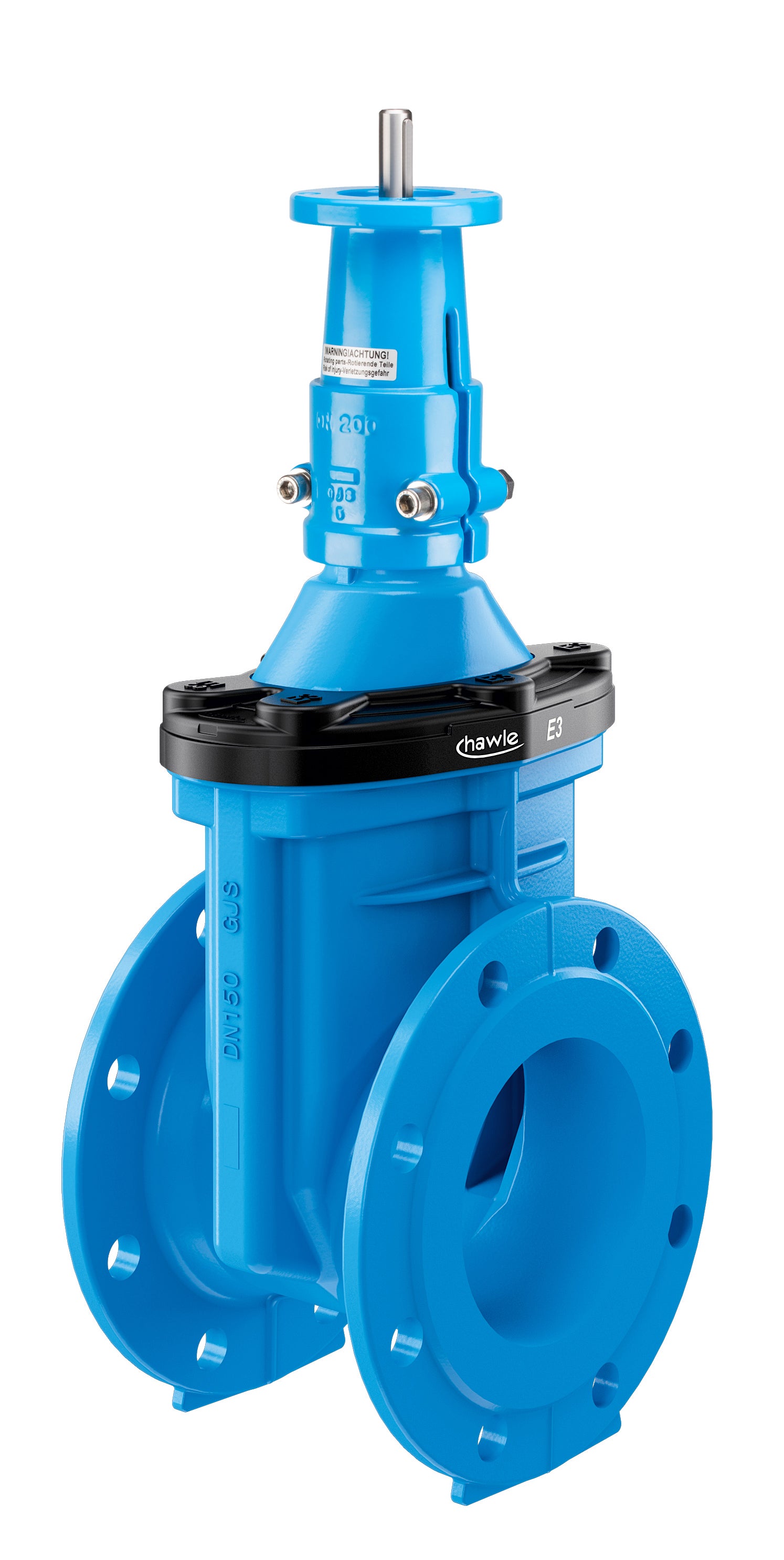 Flänsad ventil förberedd för montage av elektriskt ställdon. Önskat ställdon beställs separat efter önskemål. Fabriksmonterat don. In- och utvändigt pulverbäddmålad epoxy med min. skikttjocklek 250 µm, enligt GSK. Spindel med rullad gänga i Duplex-stål.